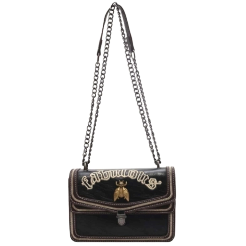 Uma bolsa moderna e sofisticada, perfeita para quem gosta de unir estilo e personalidade. Com acabamento em couro sintético preto e detalhes em bordado dourado, a peça destaca-se pela aplicação de um elegante inseto metálico no fecho, trazendo um toque único e contemporâneo. Compacta e funcional, é ideal para complementar looks casuais e formais.